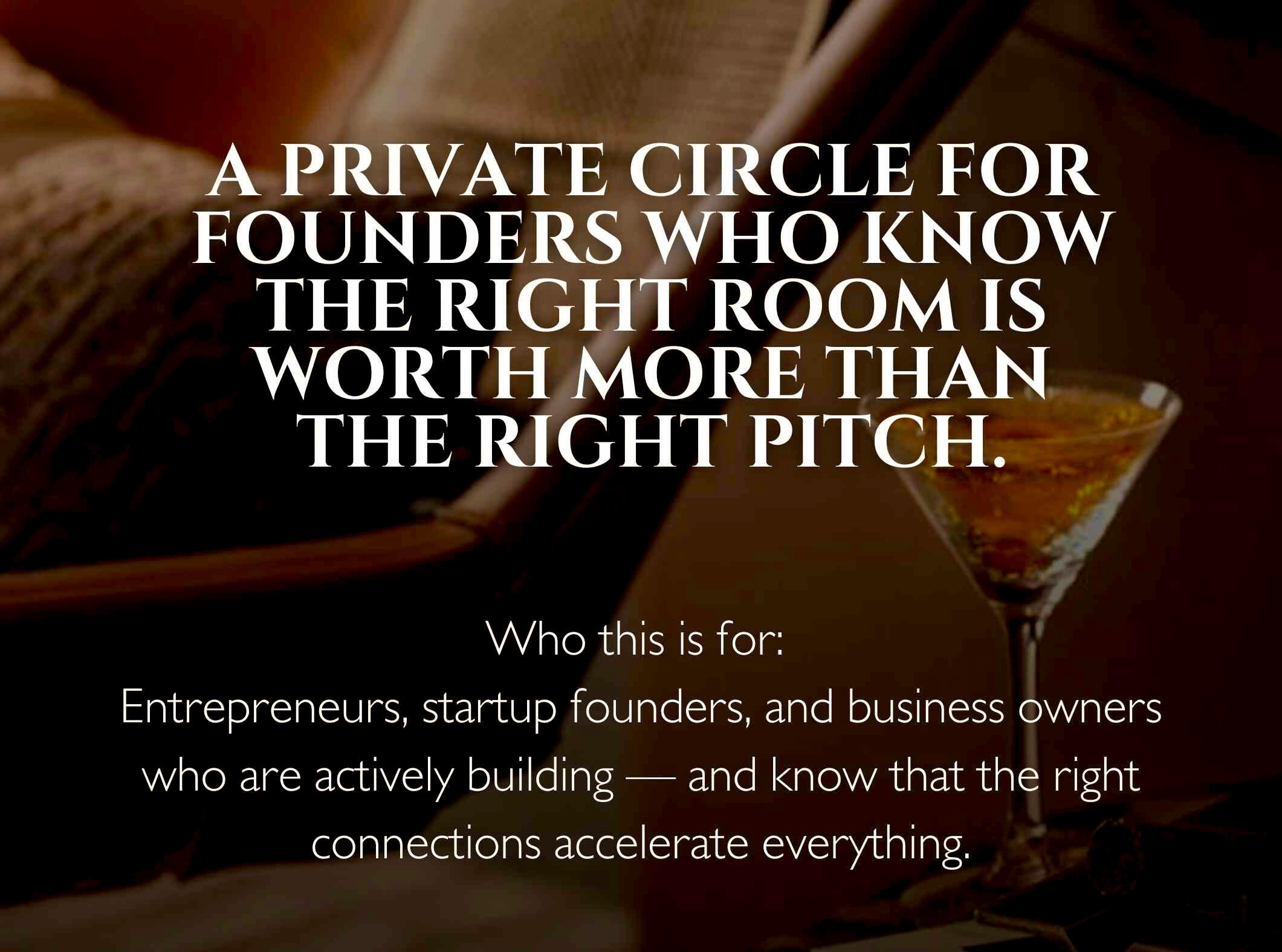 For founders who know the right room is worth more than the right strategy.