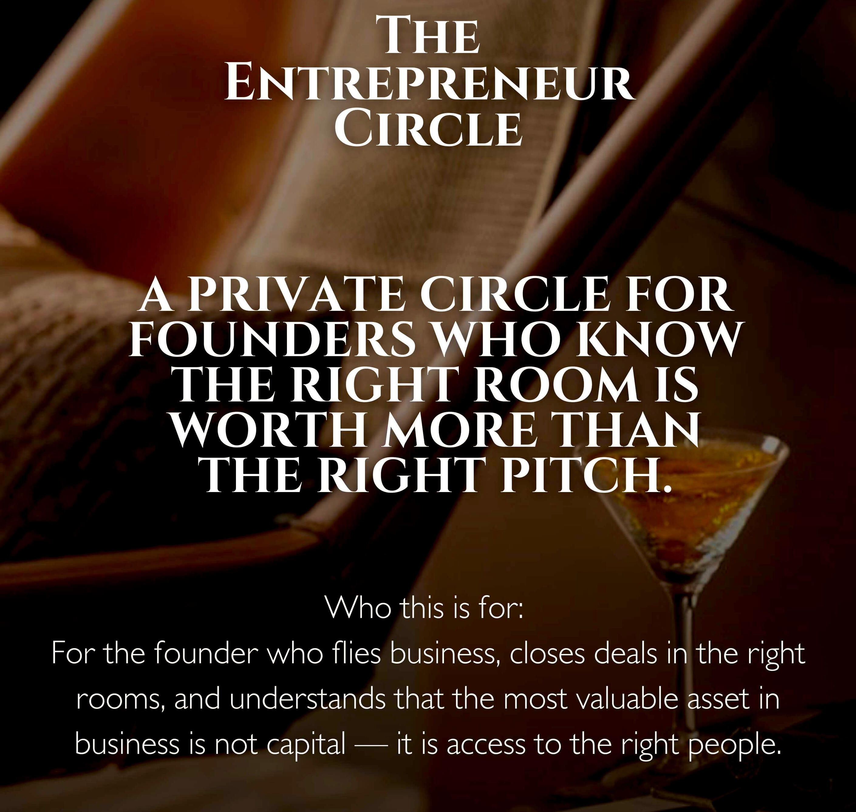 For founders who know the right room is worth more than the right strategy.
